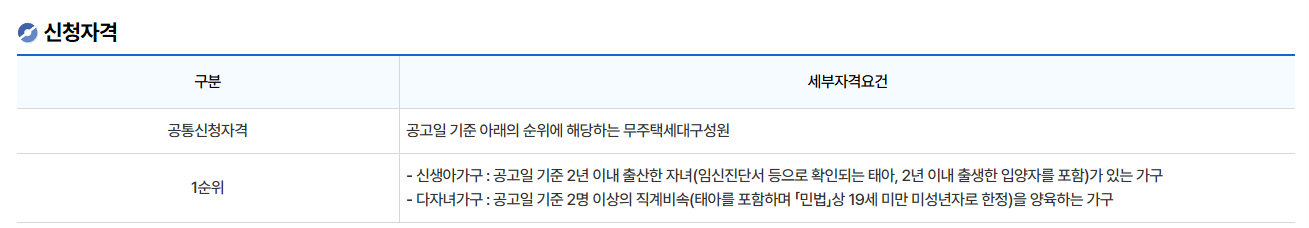 ✅ 우선순위 대상자: 생계·의료급여 수급자, 보호대상 한부모가족, 주거지원 시급가구, 장애인, 고령자 등.